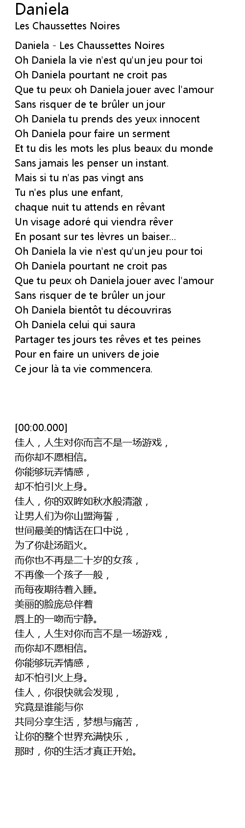 | [00:13.000] | Oh Daniela la vie n' est qu' un jeu pour toi |