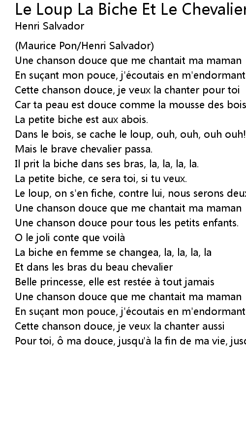 | Song | Le Loup La Biche Et Le Chevalier (Une Chanson Douce) |