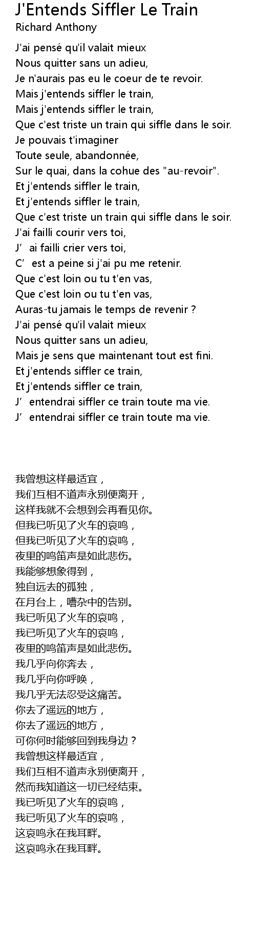 | [00:37.80] | Mais j'entends siffler le train, |