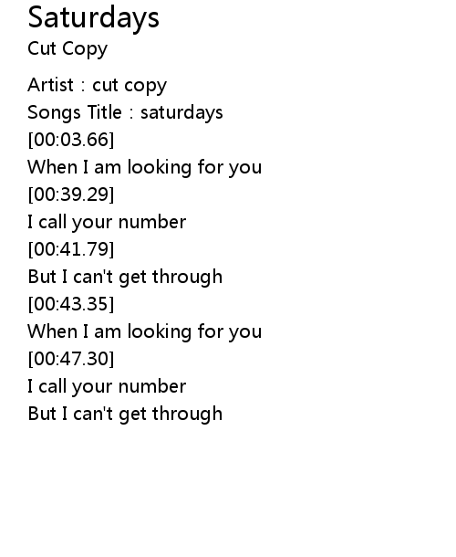 | [00:02.78] | Songs Title: saturdays |