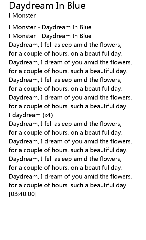 Daydream In Blue Lyrics
