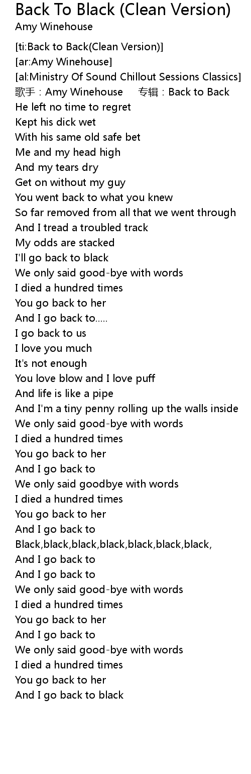| [00:05.20] | ge shou: Amy Winehouse zhuan ji: Back to Back |