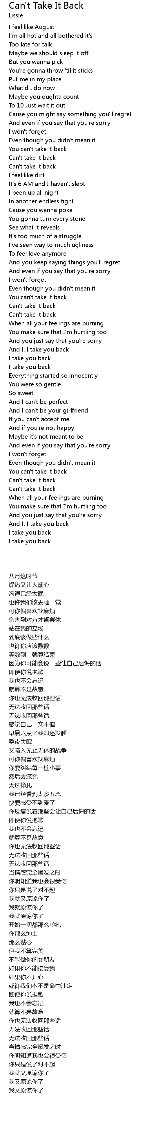 Can't Take It Back Lyrics