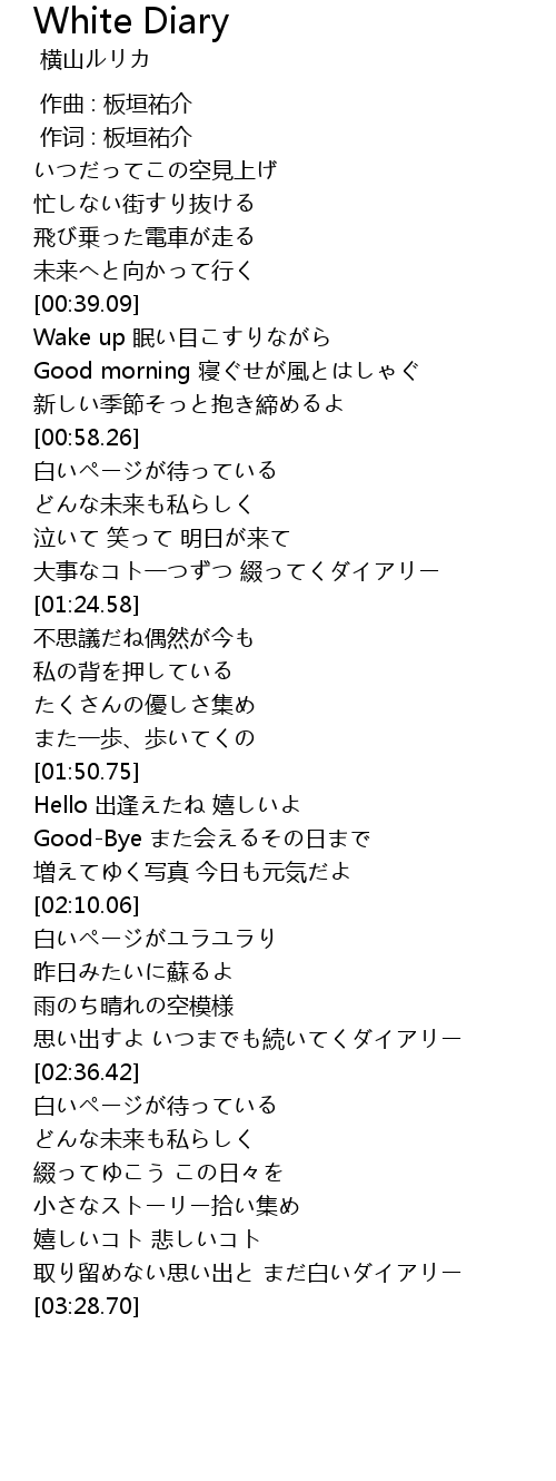 | [03:17.81] | 取り留めない思い出と まだ白いダイアリー |