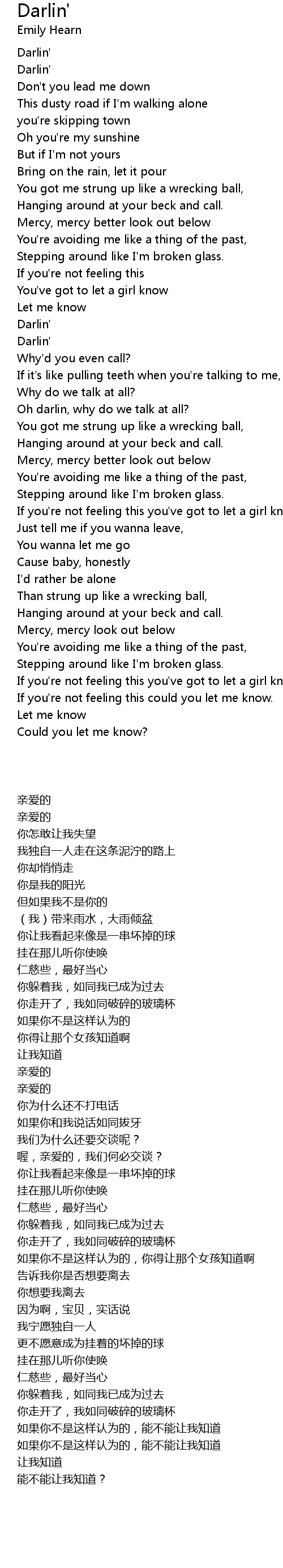 Oh darlin, why do we talk at all? |