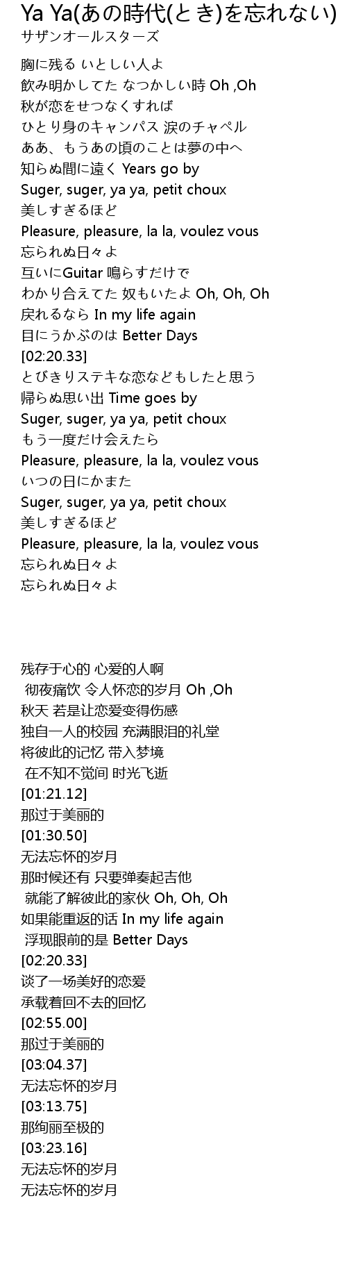 | [02:55.00] | Suger, suger, ya ya, petit choux |