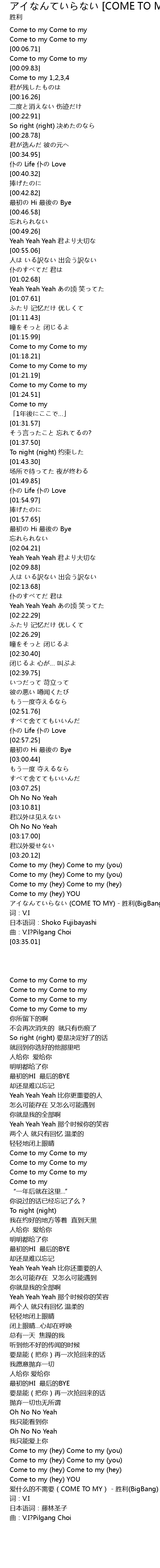 | [03:32.80] | アイなんていらない (COME TO MY) - 胜利(BigBang) |