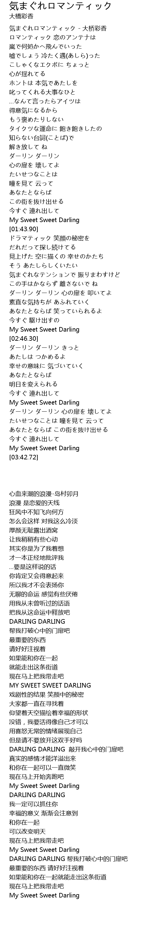 | [03:39.42] | My Sweet Sweet Darling |