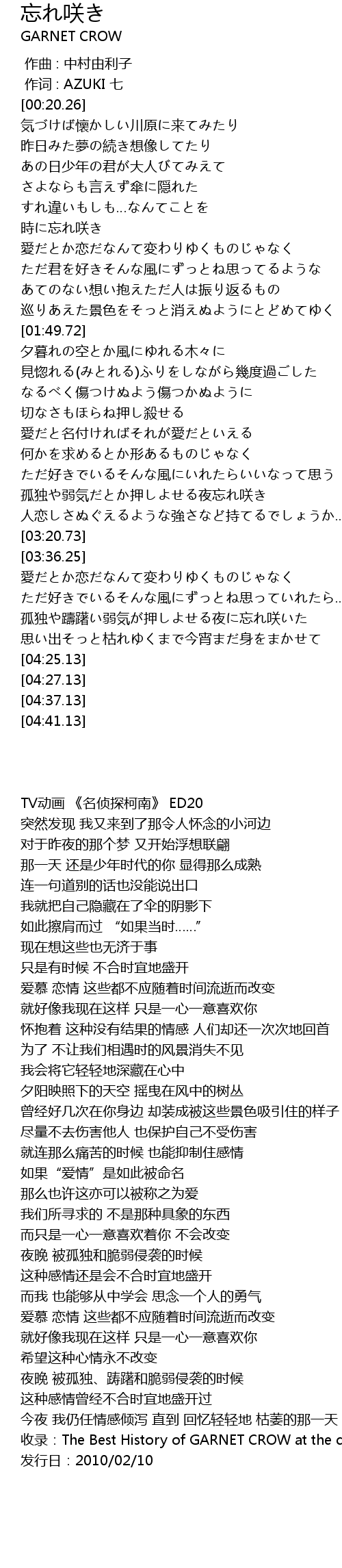 | [03:59.76] | 孤独や躊躇い弱気が押しよせる夜に忘れ咲いた |