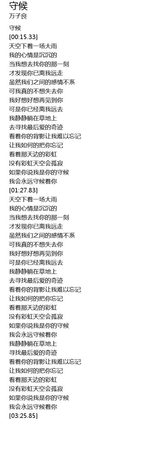 | [03:19.63] | wǒ huì yǒng yuǎn shǒu hòu zhe nǐ |
