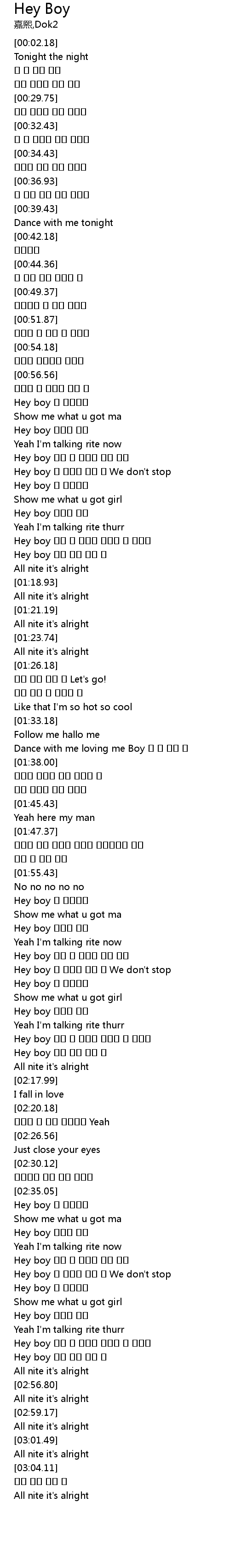 | [02:54.55] | Hey boy 나와 함께 춤을 춰 |