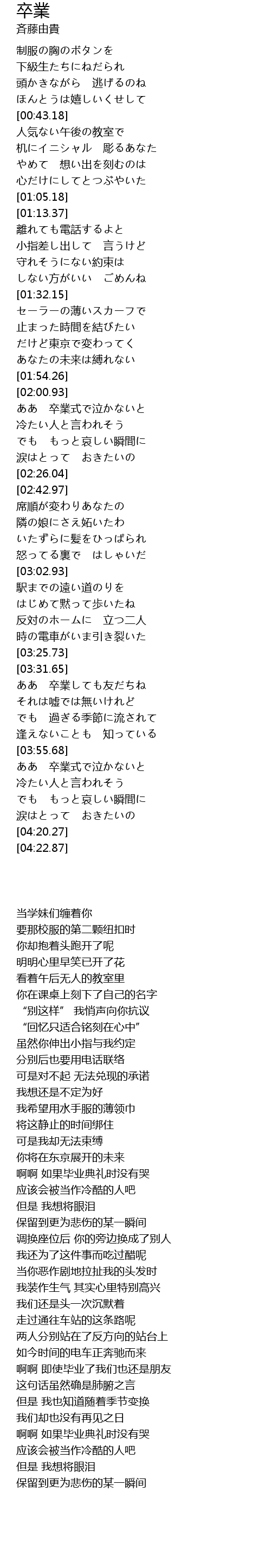 | [03:57.20] | ああ 卒業式で泣かないと |