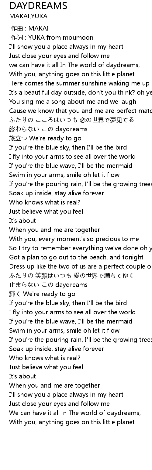 | [00:00.11] | zuò cí : YUKA from moumoon |