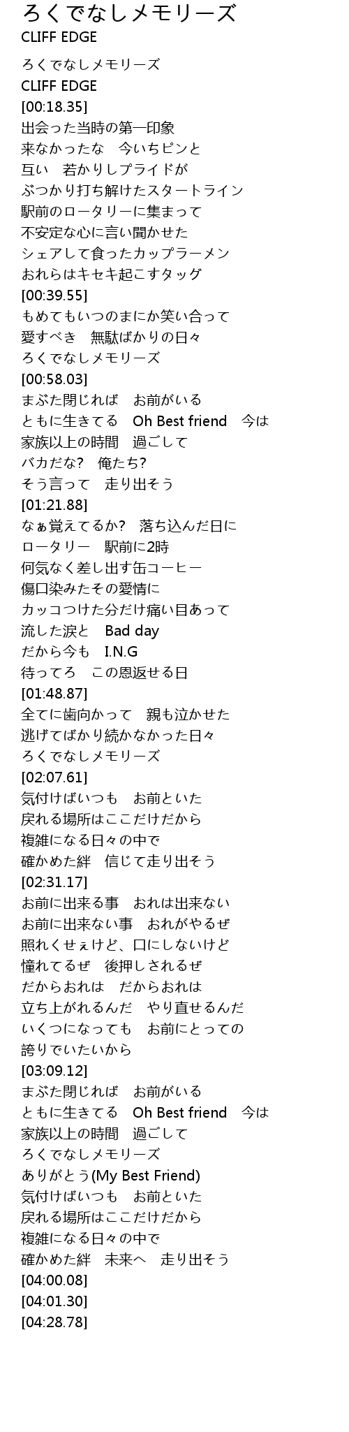 | [00:55.18] | ろくでなしメモリーズ |