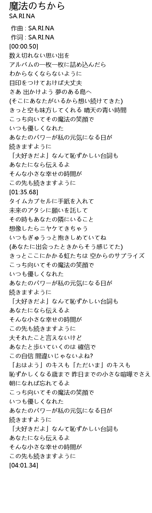 | [03:34.63] | あなたのパワーが私の元気になる日が |
