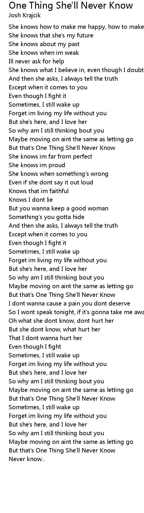 But that's One Thing She'll Never Know |