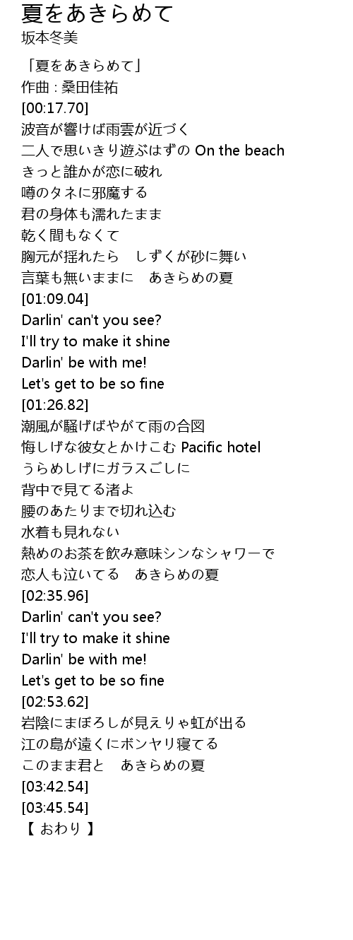 | [01:01.74] | 言葉も無いままに あきらめの夏 |