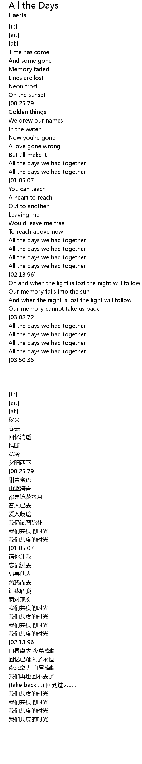 All the days we had together |