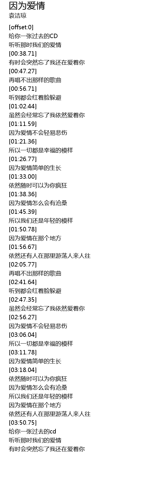 | [00:34.22] | 听听那时我们的爱情 |