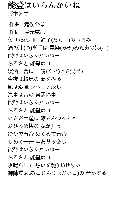 | Song | 能登はいらんかいね |
