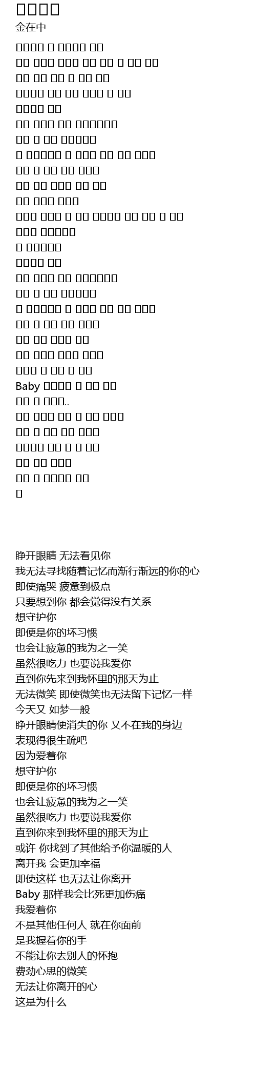 | [01:18.270] | 눈뜨면 사라질 것 같은 널보고도 곁에 없는 것 같아 |