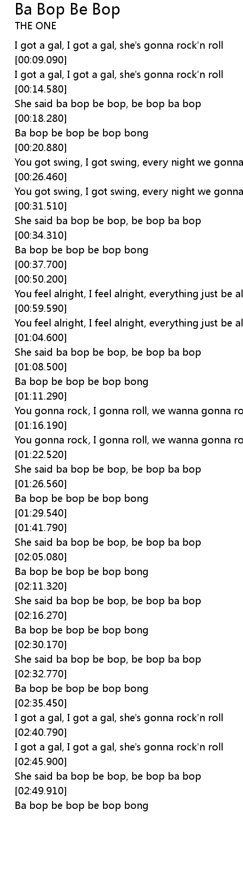 | [00:15.340] | She said ba bop be bop, be bop ba bop |