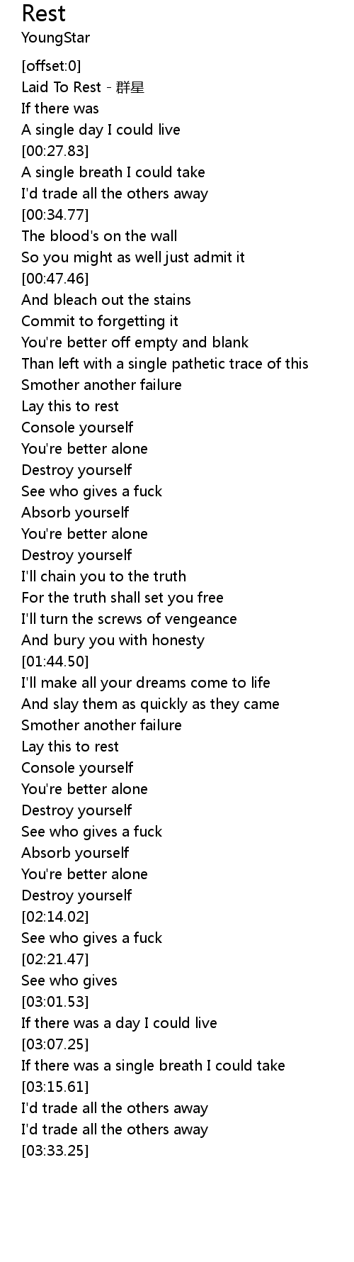 | [01:00.22] | Than left with a single pathetic trace of this |