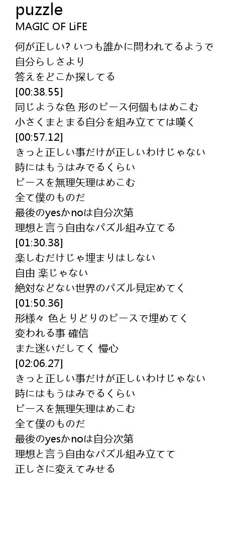 | [02:45.14] | 理想と言う自由なパズル組み立てて |
