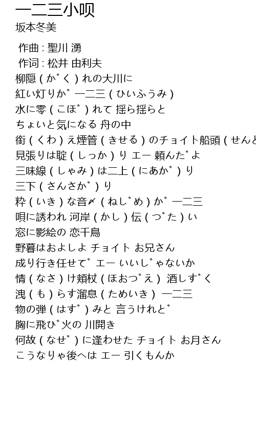 | [03:12.316] | 洩(も)らす溜息(ためいき) 一二三 |