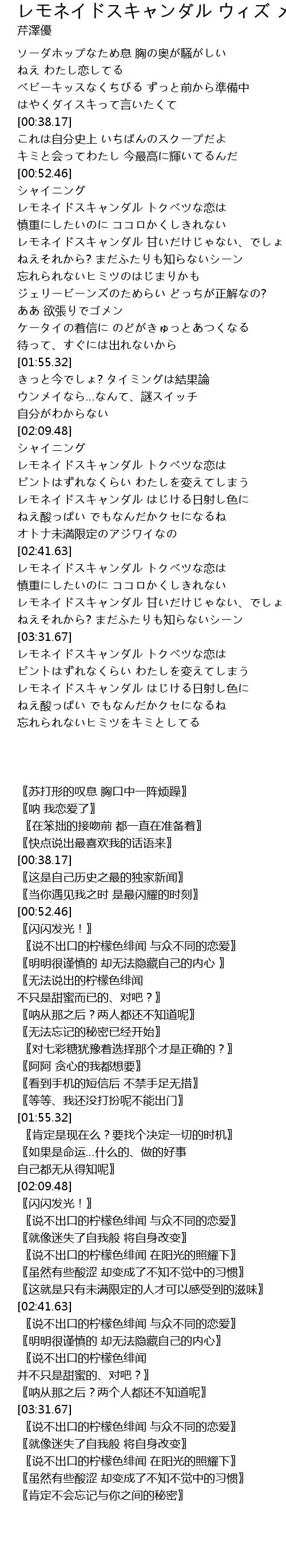 | [00:53.24] | レモネイドスキャンダル トクベツな恋は |