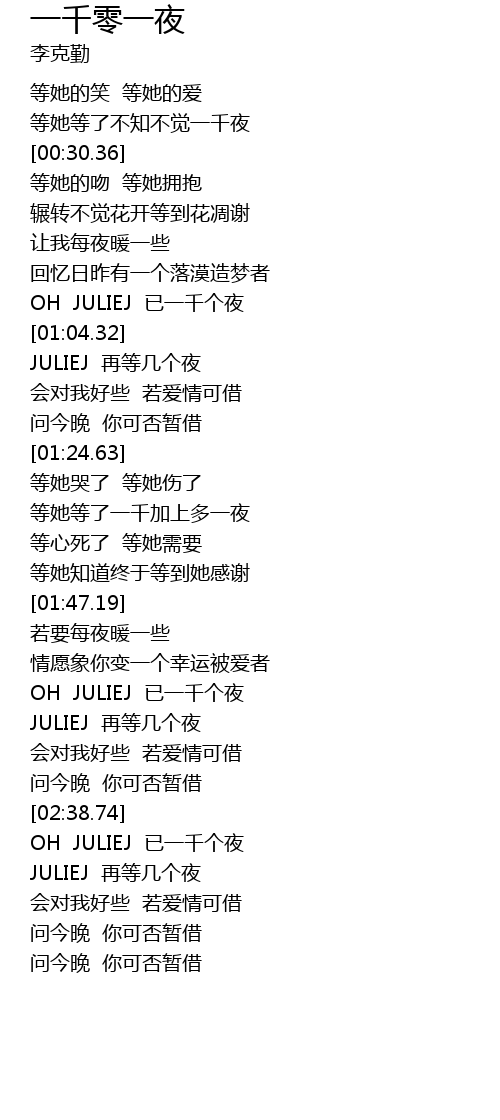 | [02:43.94] | OH JULIEJ 已一千个夜 |