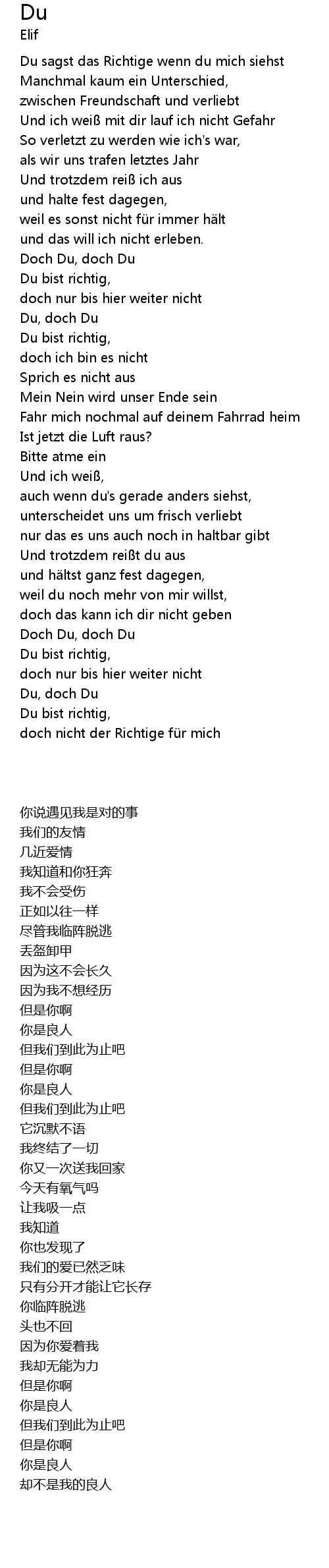 | [00:08.120] | Du sagst das Richtige wenn du mich siehst |