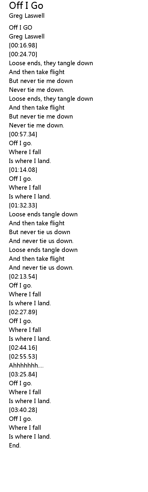 | [00:36.65] | But never tie me down |