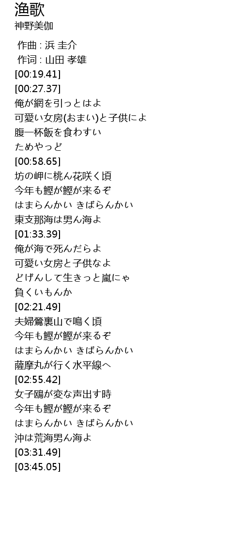 | [03:03.04] | 今年も鰹が鰹が来るぞ |