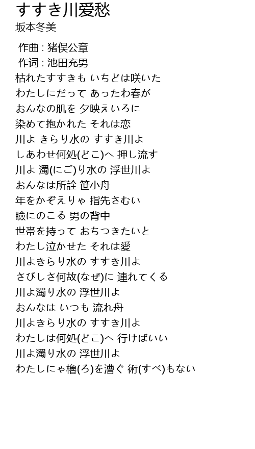 | [02:37.31] | 川よ濁り水の 浮世川よ |