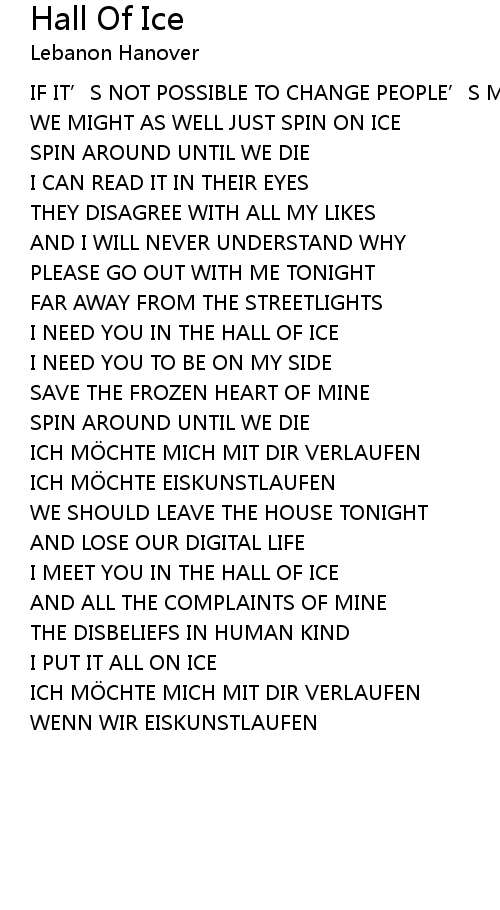 | I NEED YOU IN THE HALL OF ICE | |