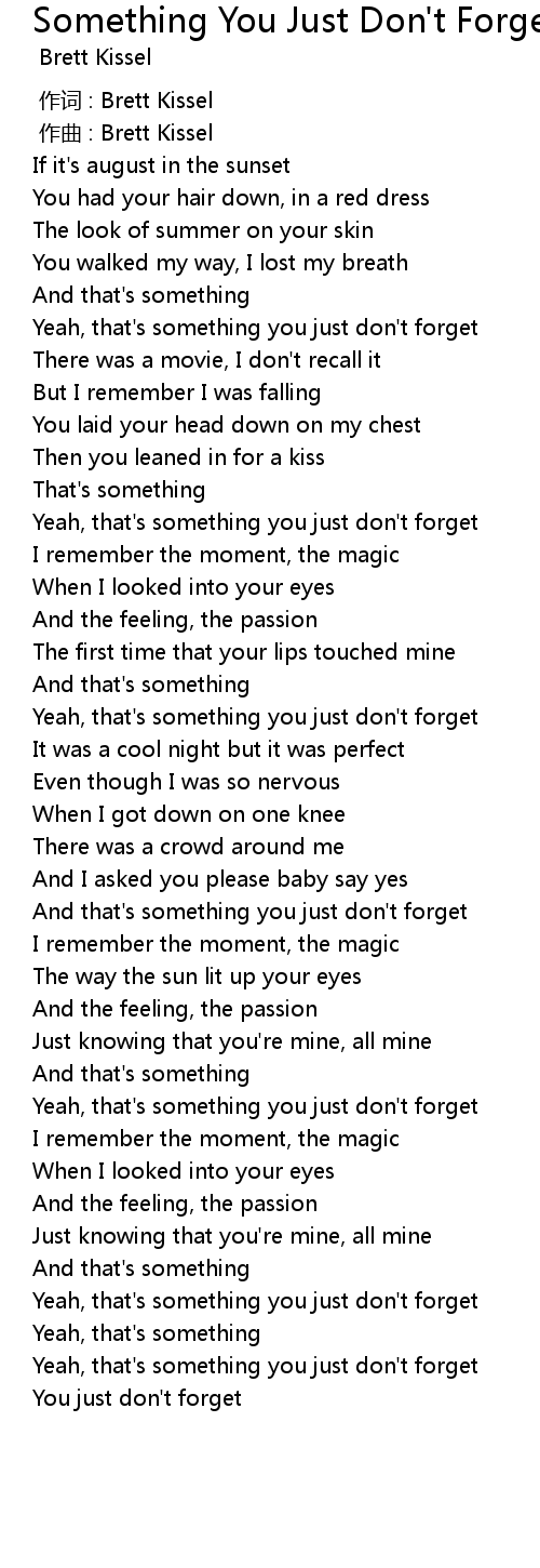 | Song | Something You Just Don't Forget |