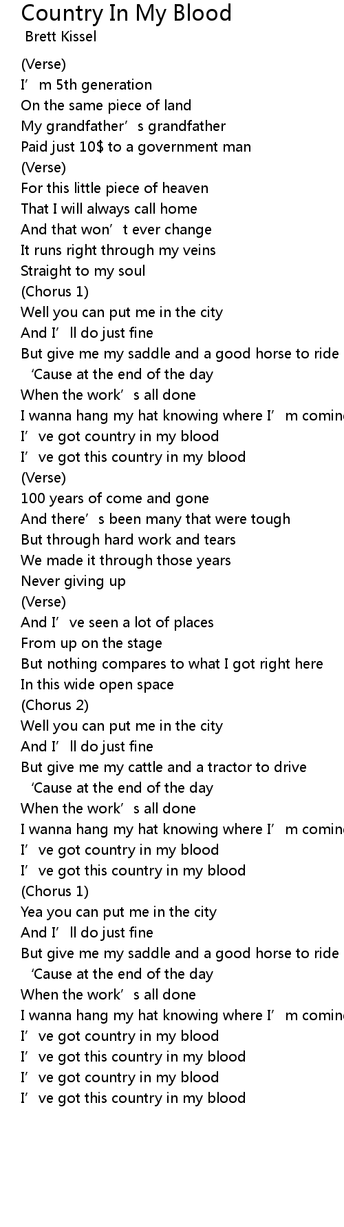 | I’ve got country in my blood | |