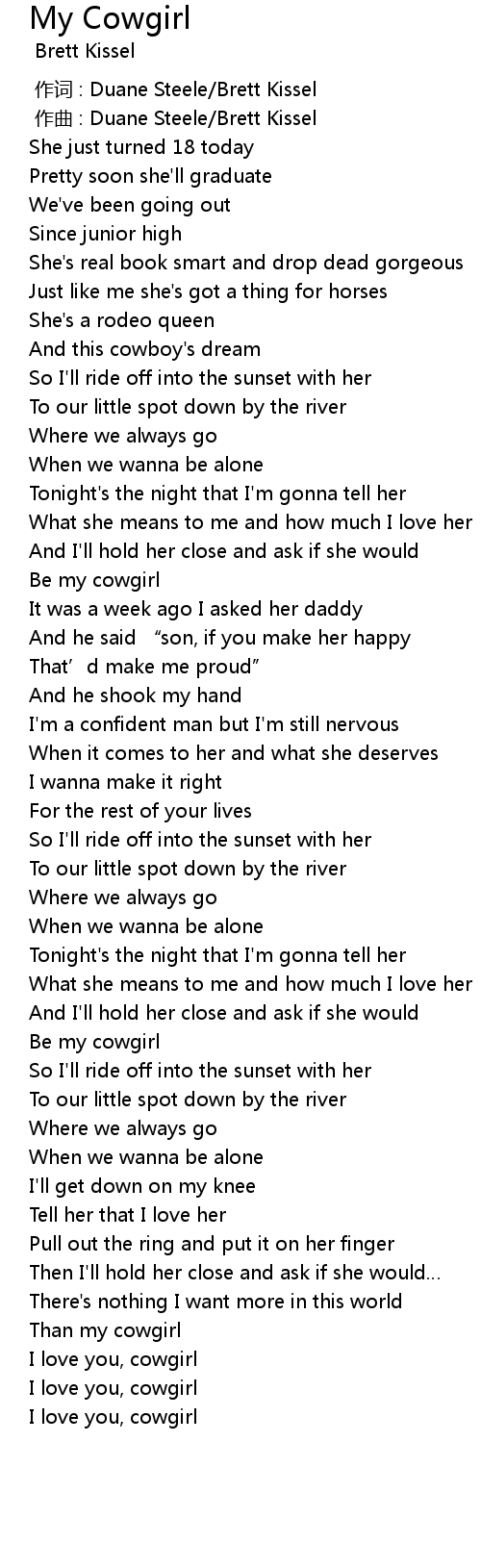 | [00:00.000] | 作词 : Duane Steele/Brett Kissel |