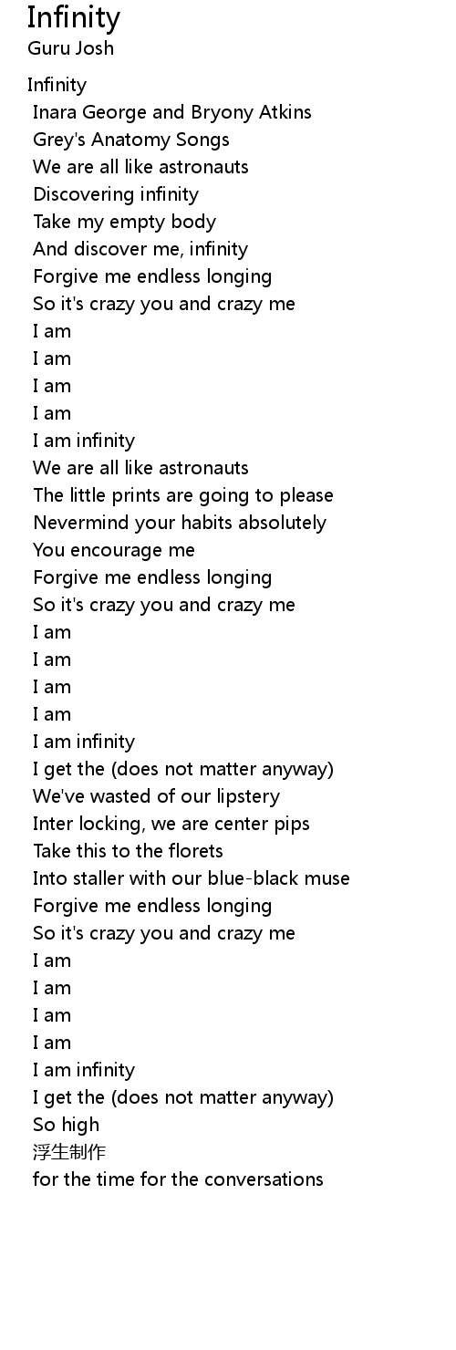| And discover me, infinity | |