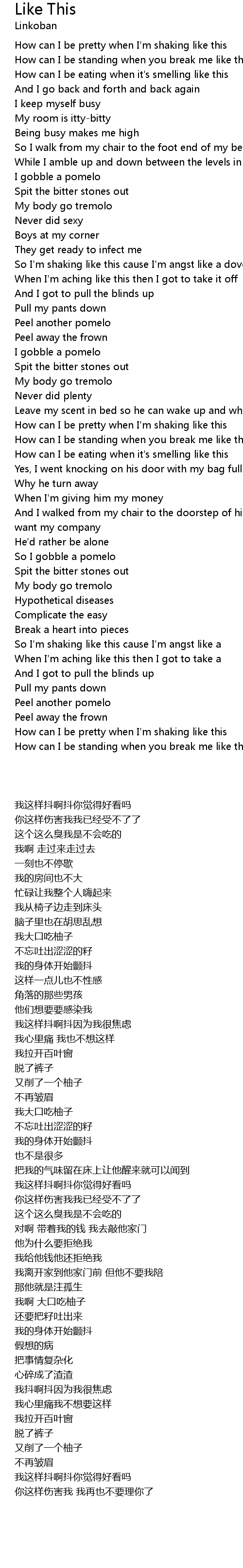 | [00:17.42] | How can I be pretty when I'm shaking like this |