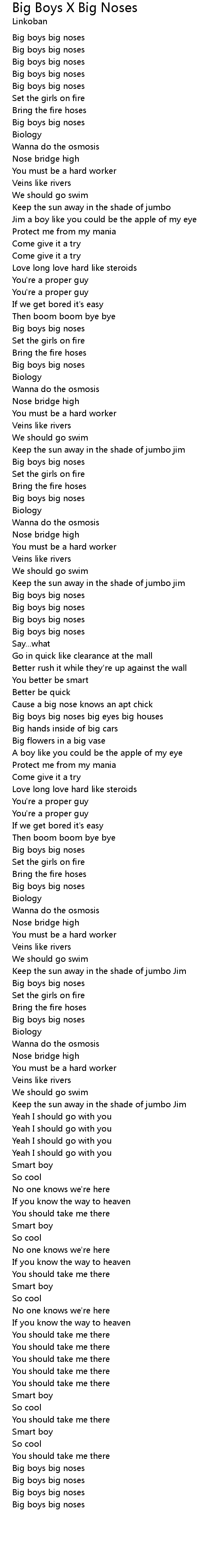 | [02:20.41] | Big boys big noses big eyes big houses |