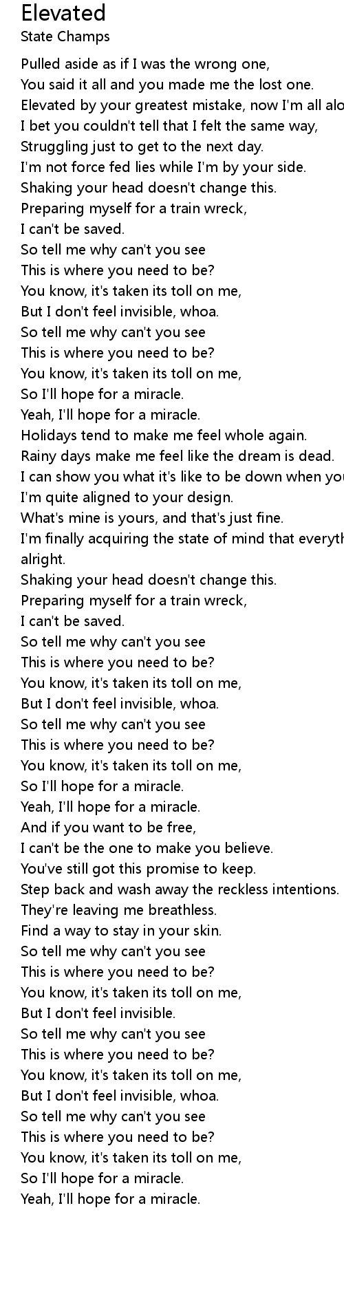 Elevated by your greatest mistake, now I'm all alone. |