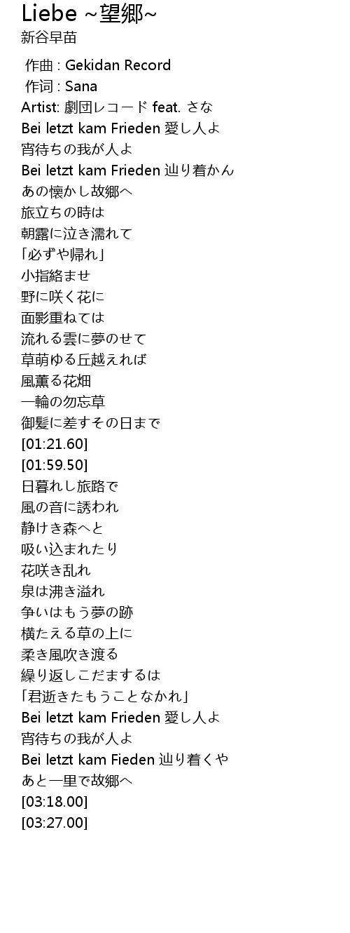 | [02:58.40] | Bei letzt kam Frieden 愛し人よ |