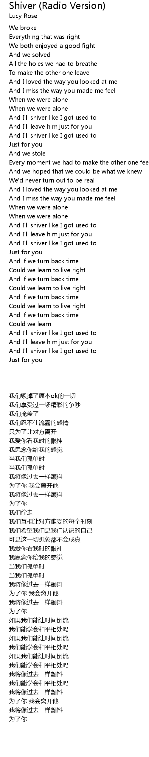 | [00:46.06] | And I'll shiver like I got used to |