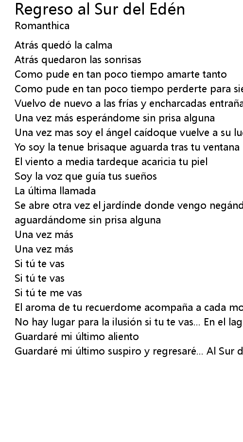 | Guardaré mi último suspiro y regresaré... Al Sur del Edén... si tú te vas |