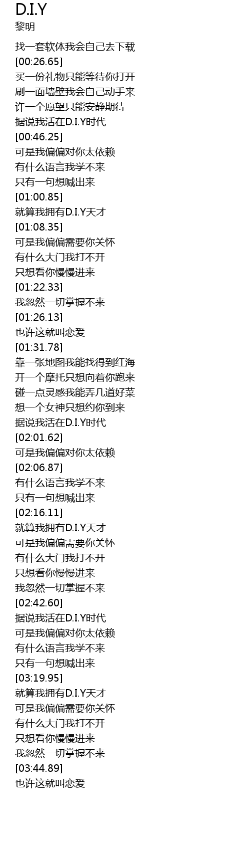 | [00:42.15] | 据说我活在D.I.Y时代 |
