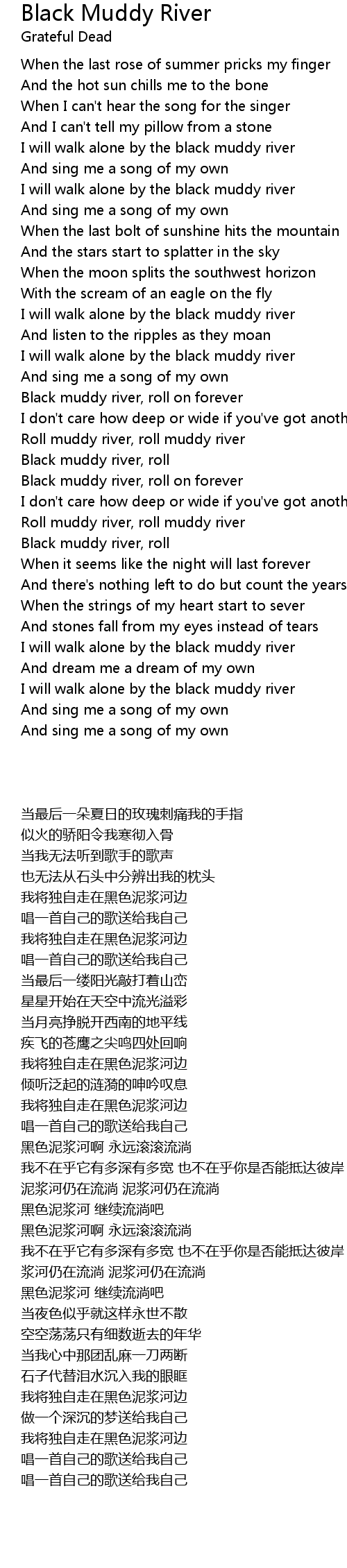 [00:48.70] I will walk alone by the black muddy river