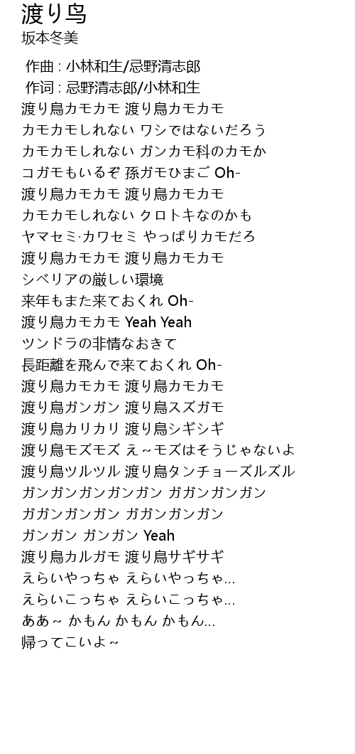 | [03:44.02] | 渡り鳥カルガモ 渡り鳥サギサギ |
