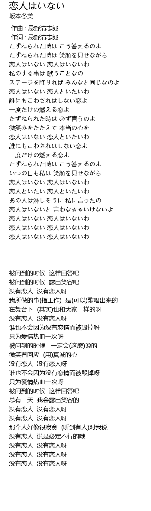 | [03:56.44] | 恋人はいない 恋人はいないわ |